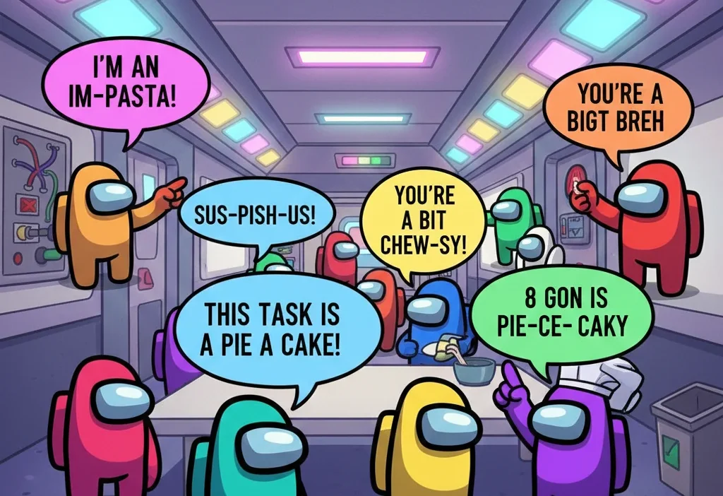 - Simple vocabulary: Words like sus, vent, task, and impostor are easy to twist.